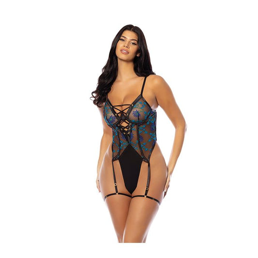Lola Underwire Embroidered Teddy with Attached Garter Stays